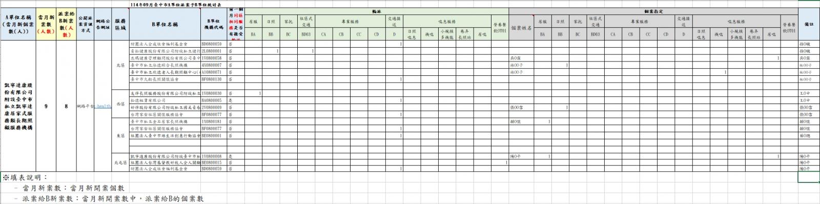 配合長期照顧管理中心規定,公告114年09月合作B級單位輪派情形。